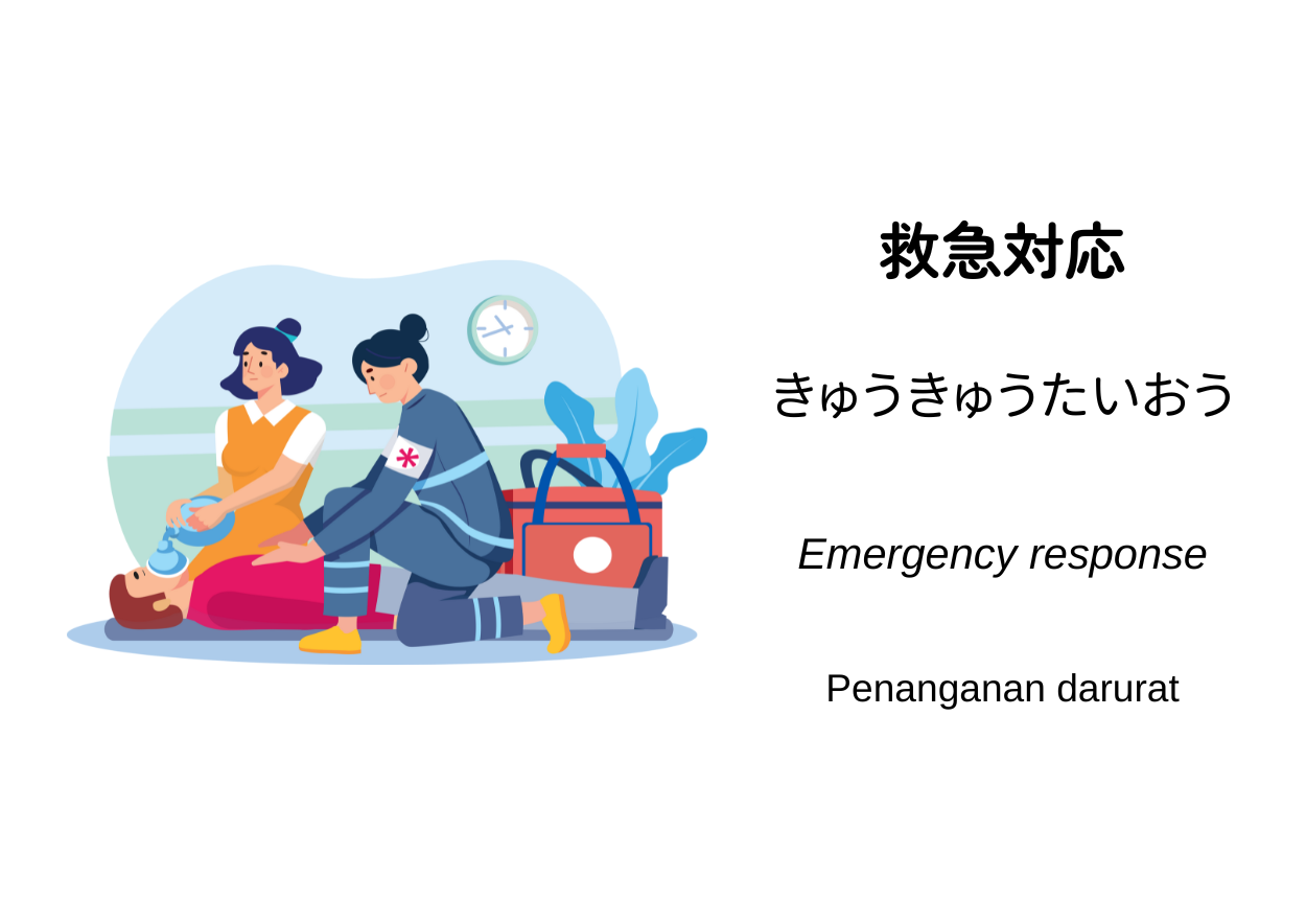 Dalam dunia konstruksi yang penuh risiko fisik, kesiapan menghadapi kondisi darurat sangat krusial. 救急対応 di industri konstruksi berarti melakukan pertolongan pertama dan penyelamatan yang cepat serta tepat ketika terjadi kecelakaan kerja di lokasi proyek. Yang paling penting saat terjadi kecelakaan adalah memastikan keselamatan di lokasi kejadian, misalnya yang harus dilakukan paling pertama yaitu memutus aliran daya atau energi gerak, melakukan ventilasi, dan sebagainya. Jika hal ini terlupakan dan langsung melakukan kegiatan penyelamatan, sangat mudah terjadi bencana sekunder. Misalnya, saat mencoba menyelamatkan orang yang jatuh ke dalam manhole, malah diri sendiri juga bisa ada resiko mati lemas. Atau misalnya saat mencoba menyelamatkan orang yang terjepit mesin, malah diri sendiri juga bisa ikut terjepit.