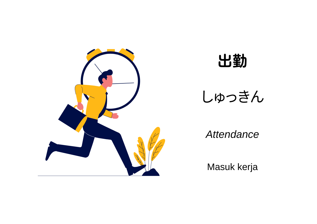 出勤(しゅっきん, shukkin)artinya pergi bekerja atau berangkat ke tempat kerja. Dalam sistem kerja Jepang yang sangat menekankan kedisiplinan dan tanggung jawab waktu, istilah 出勤 berarti masuk kerja atau kehadiran di tempat kerja pada hari kerja yang telah dijadwalkan. Ini adalah bagian mendasar dari manajemen tenaga kerja yang tercatat secara formal setiap hari di semua proyek, termasuk proyek konstruksi.