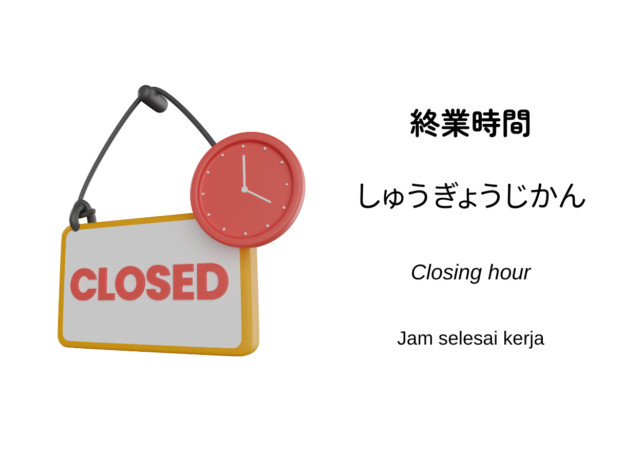終業時間(しゅうぎょうじかん, shūgyō jikan)artinya jam ketika pekerjaan sehari berakhir. Istilah ini merujuk pada akhir jam kerja yang dicantumkan dalam peraturan perusahaan dan biasanya sama maknanya dengan jam pulang atau waktu pekerjaan selesai. Contohnya, jika waktu mulai kerja pukul 09.00 dan waktu selesai kerja pukul 18.00, maka pukul 18.00 itulah yang disebut sebagai 終業時間.