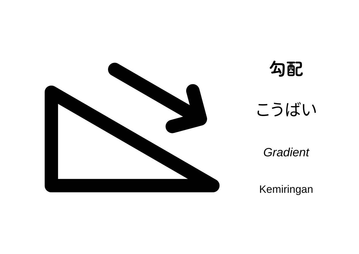 勾配(こうばい, kōbai) artinya kemiringan lembut yang dibuat untuk memungkinkan air mengalir. Kemiringan ini dinyatakan dengan perbandingan antara perubahan tinggi (komponen vertikal) dan jarak mendatar (komponen horizontal). Dengan kata lain, ini menggambarkan berapa besar kenaikan atau penurunan terhadap jarak horizontal tertentu dalam bentuk rasio.