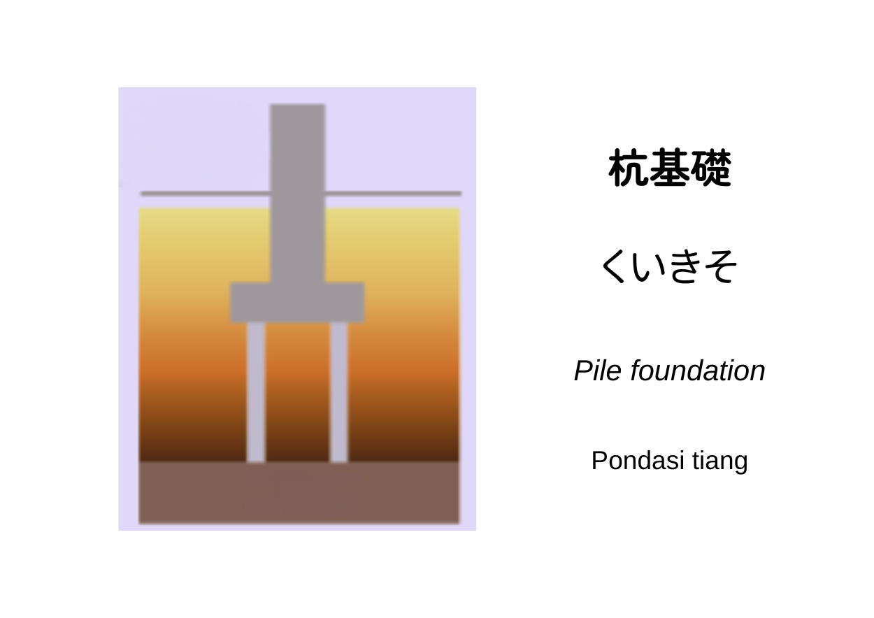 Pondasi dangkal biasa (seperti pondasi langsung, pondasi jalur, pondasi tunggal, atau pondasi pelat penuh) dapat digunakan apabila tanah di bawahnya memiliki daya dukung yang cukup. Namun, pada tanah dengan daya dukung rendah, tanah lunak, atau lahan yang dipengaruhi oleh air tanah, pondasi dangkal memiliki risiko penurunan atau kemiringan. Dalam kasus seperti itu, 杭基礎 adalah metode di mana tiang dipancang hingga kedalaman tanah, dan beban struktur ditopang oleh kekuatan tiang itu sendiri, gesekan antara tiang dan tanah di sekitarnya, serta dukungan dari lapisan tanah keras di ujung tiang.