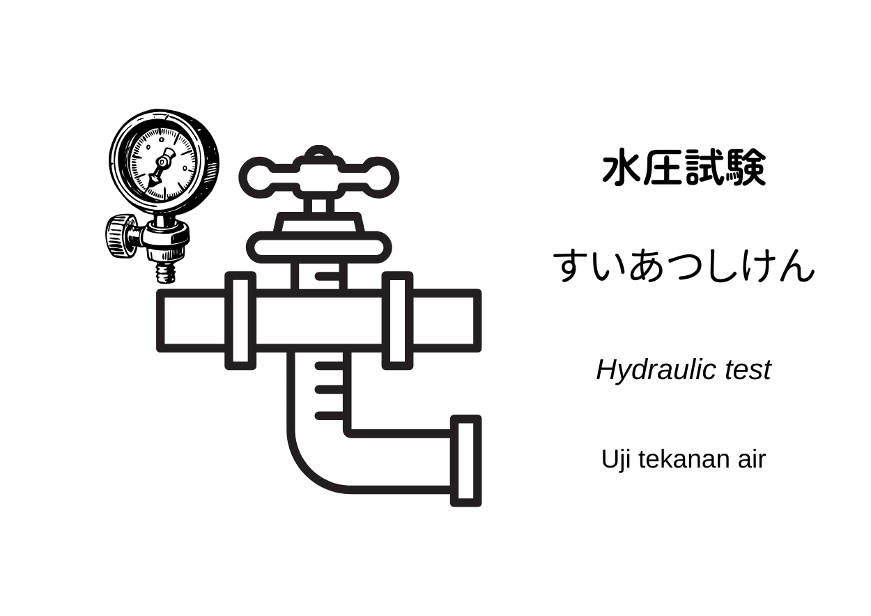 水圧試験(すいあつしけん, suiatsu shiken) adalah pengujian dengan mengisi air ke dalam pipa, seperti pipa air bersih dan pipa air panas, kemudian memberikan tekanan untuk memastikan tidak ada kebocoran pada sistem perpipaan tersebut.