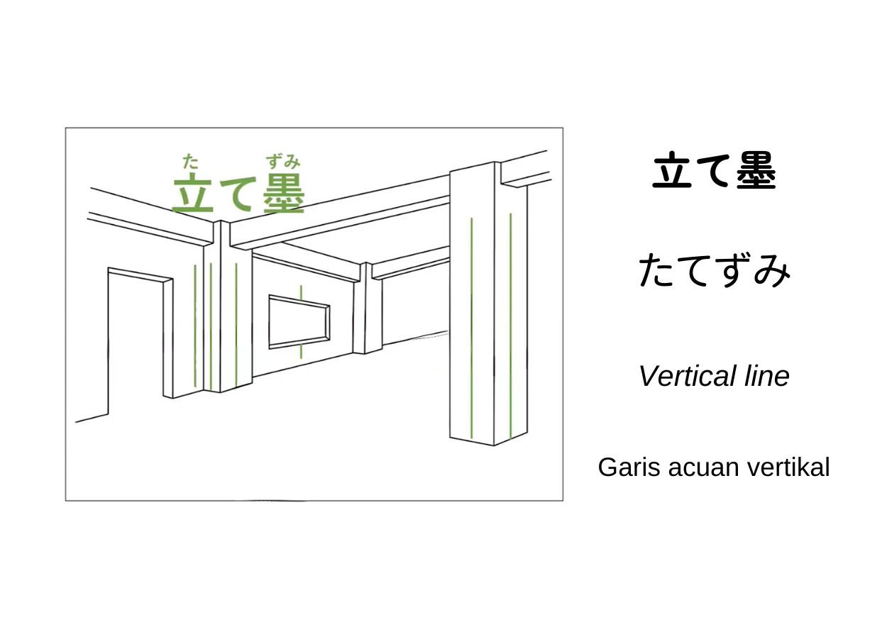 立て墨(たてずみ, tatezumi) artinya garis acuan vertikal yang ditandai pada permukaan dinding, kolom, atau partisi. Garis ini dipakai sebagai patokan lurus-tegak untuk menyetel posisi elemen bangunan, misalnya rangka dinding, kusen, pipa, duct, panel agar sejajar dan tidak miring. Istilah ini digunakan dalam proses yang disebut 墨出し(すみだし / sumidashi), yaitu kegiatan menandai atau menggambar garis acuan di lokasi proyek.