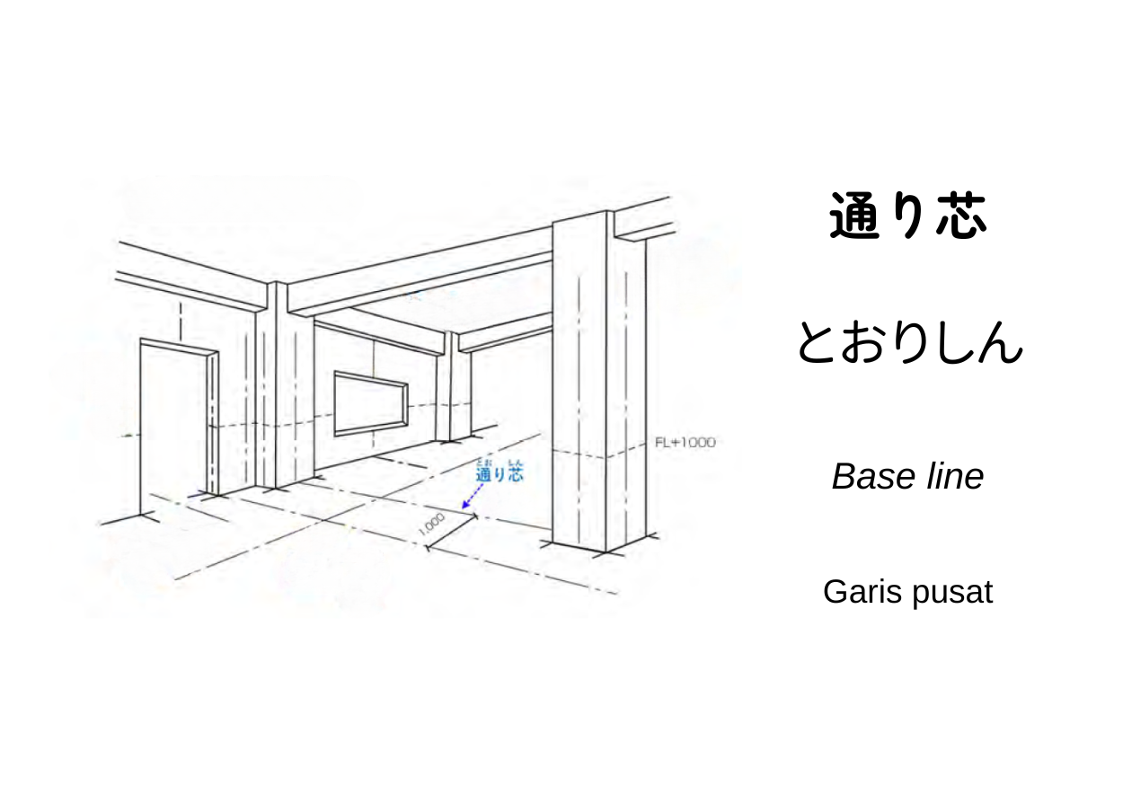 通り芯(とおりしん, tōrishin) artinya garis grid atau garis pusat yang menjadi acuan utama penentuan posisi elemen bangunan. Di lapangan, istilah ini juga dipakai sebagai 壁芯(かべしん, kabeshin) dan 柱芯(はしらしん, hashirashin). Dalam gambar desain maupun saat pelaksanaan konstruksi, garis ini digunakan sebagai dasar untuk menentukan posisi dan ukuran setiap komponen bangunan.