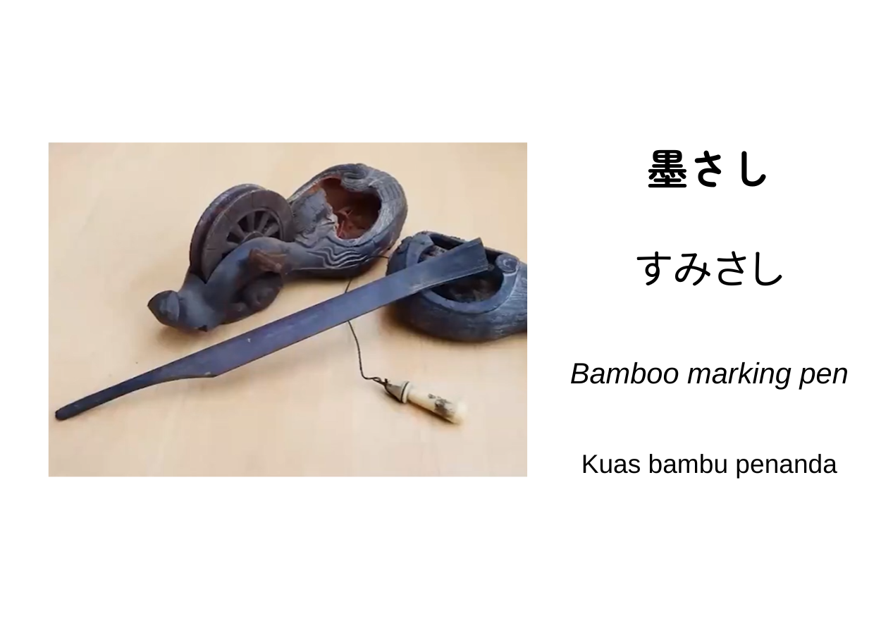 墨さし adalah alat yang digunakan bersama dengan sashigane (penggaris siku) dan sumitsubo (tempat tinta).