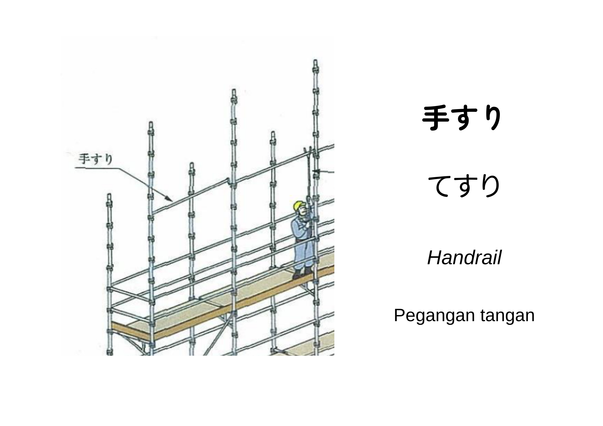 Dalam industri konstruksi Jepang, terdapat konsep 手すり先行工法(てすりせんこうこうほう, tesuri senkou kouhou), yaitu metode kerja di mana handrail dipasang terlebih dahulu sebelum pekerja melakukan pekerjaan di area tinggi. Dalam pelaksanaan pekerjaan perakitan perancah di lokasi pekerjaan konstruksi, sebelum pekerja naik ke lantai kerja perancah, handrail yang sesuai terlebih dahulu dipasang pada bagian yang menjadi tepi lantai kerja berdasarkan standar metode handrail didahulukan. Selain itu, pada saat melepas lantai kerja lapisan paling atas, pekerjaan dilakukan dengan tetap membiarkan handrail di tepi lantai kerja tersebut terpasang. Dengan demikian, bahkan pada tingkat paling atas pun pekerjaan dapat dilakukan dalam kondisi handrail selalu terpasang di sisi luar, sehingga kecelakaan jatuh atau terjatuh dari perancah dapat dicegah.