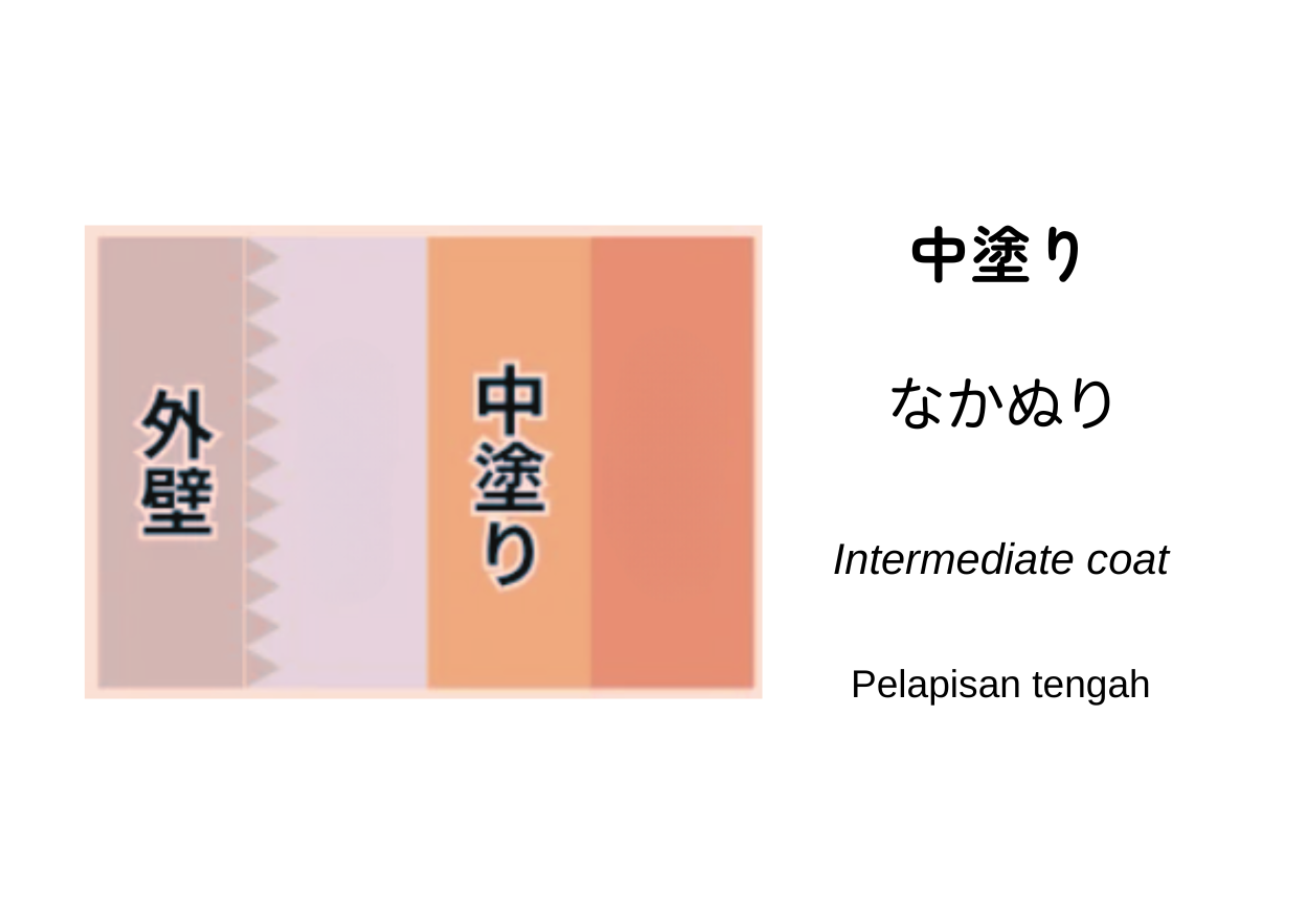 Pada 中塗り, untuk menghasilkan hasil akhir tanpa belang, permukaan yang menjadi tidak rata karena goresan atau retakan dibuat menjadi halus. Selain itu, efek penguatan dan efek adhesi dari bahan pelapisan akhir dapat ditingkatkan. Baik 下塗り maupun 中塗り pada pengecatan dinding luar merupakan proses yang tidak boleh dihilangkan, dan karena masing-masing memiliki peran yang berbeda, penghilangan atau pengerjaan yang asal-asalan dapat menjadi penyebab masalah besar.