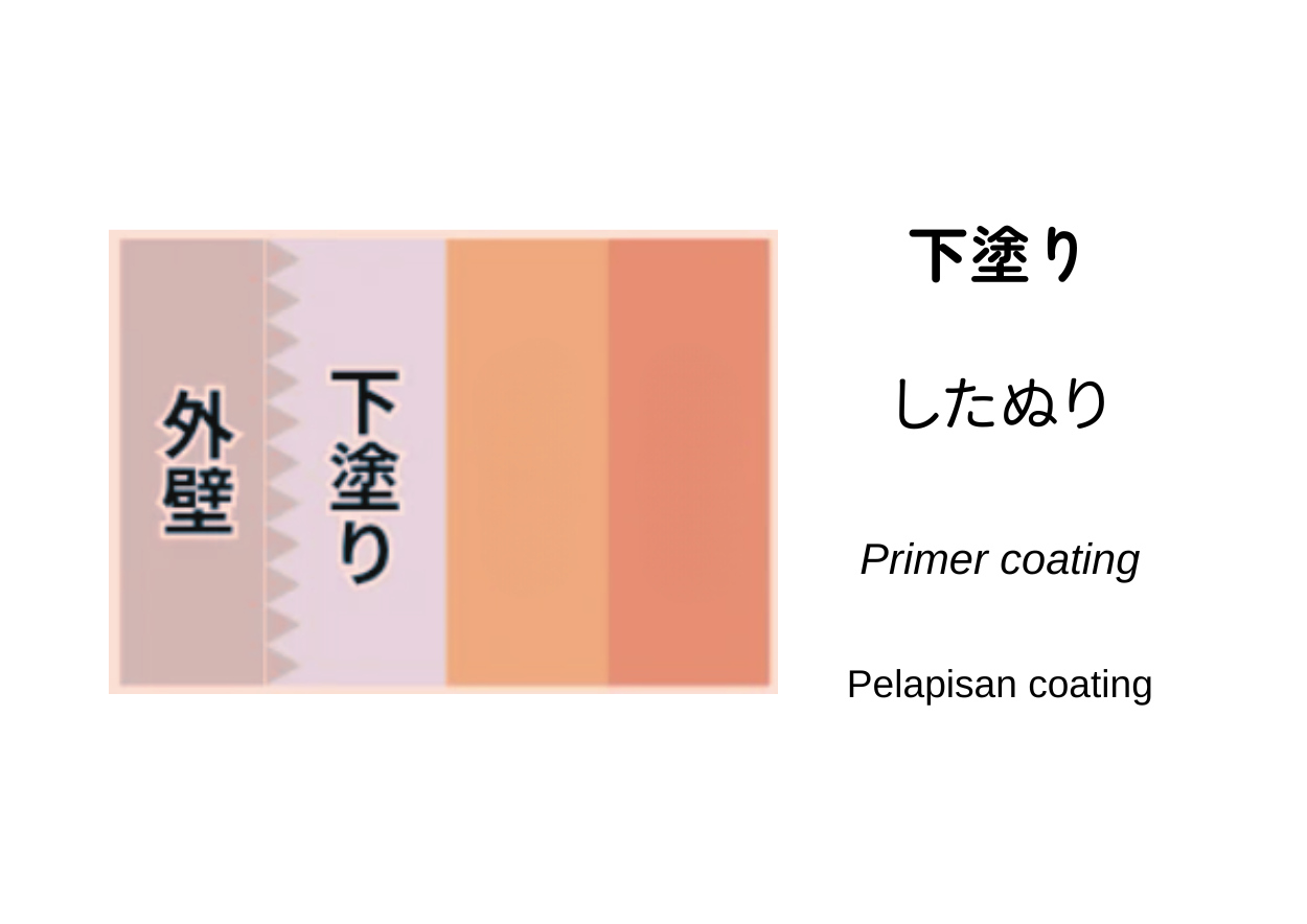 下塗り meratakan ketidakteraturan atau perbedaan daya serap pada permukaan dinding luar, sehingga cat lapisan atas dapat menempel dengan baik. Selain itu, karena memiliki efek meningkatkan kedap air, 下塗り juga berperan mencegah masuknya air hujan dan memperlambat kerusakan bangunan. Jika proses ini dihilangkan, risiko terjadinya pengelupasan cat dan penurunan daya tahan akan meningkat, sehingga 下塗り merupakan proses penting yang harus dilakukan.