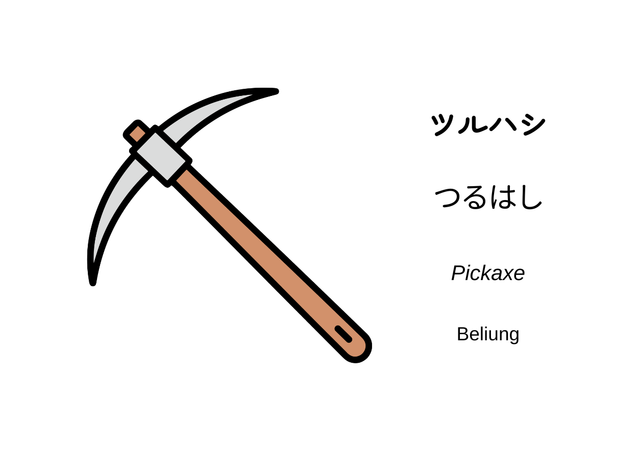 Kepala ツルハシ umumnya terbuat dari logam, dan bagian gagangnya biasanya terbuat dari logam atau kayu. Di Jepang, banyak produk yang dijual umum memiliki kepala yang dicat merah. Bentuk yang hanya memiliki satu sisi menjorok pada bagian kepala disebut kata tsuruhashi. Sedangkan, bentuk yang salah satu sisinya runcing dan sisi lainnya berupa mata pisau datar disebut tetsudō tsuruhashi.