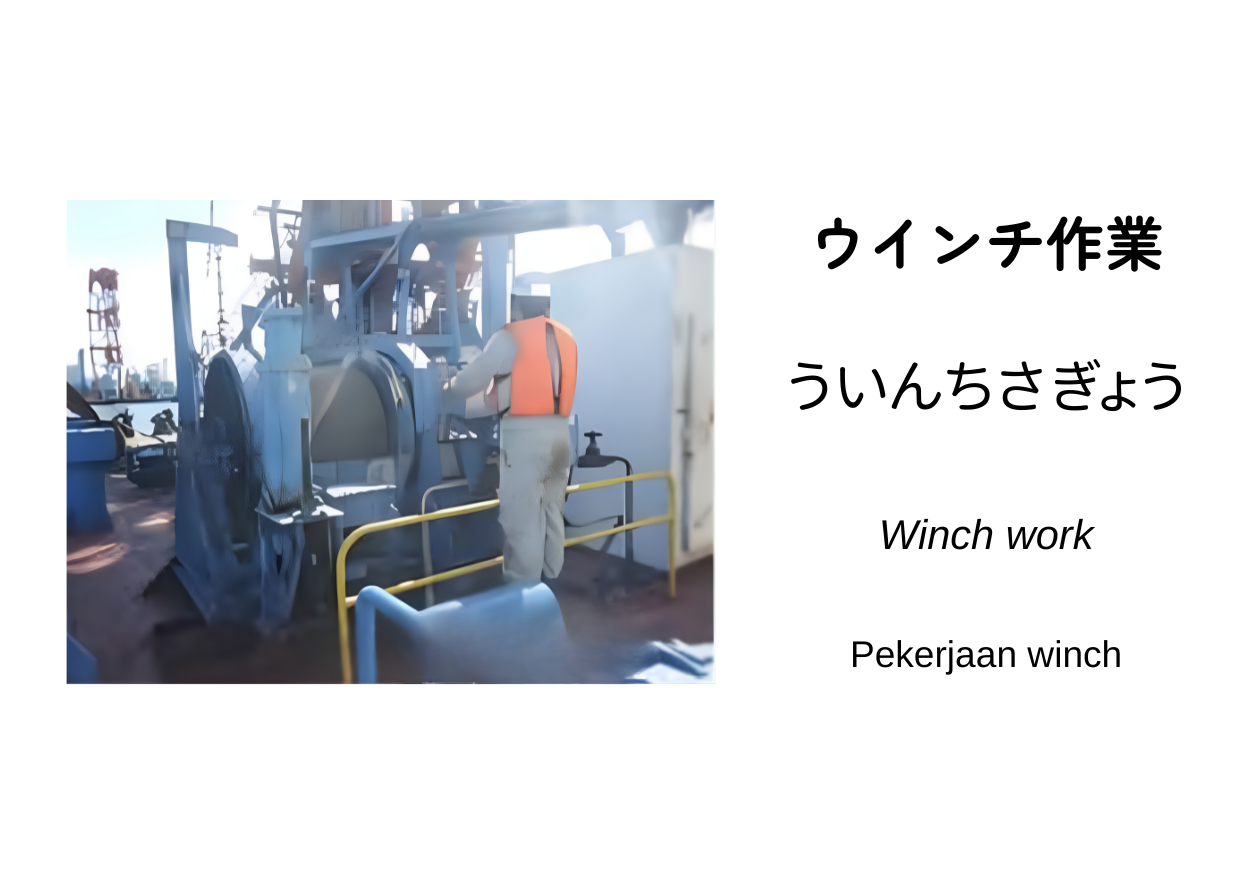 ウインチ作業(ういんちさぎょう, winchi sagyō) artinya pekerjaan yang menggunakan winch. Winch adalah mesin yang dapat menggulung atau mengulur kawat. Saat memindahkan atau menempatkan kapal kerja, pekerjaan dilakukan dengan mengoperasikan winch kapal penarik jangkar. Selain itu, dalam pekerjaan pembangunan pemecah gelombang, pemasangan caisson dilakukan dengan ウインチ作業.